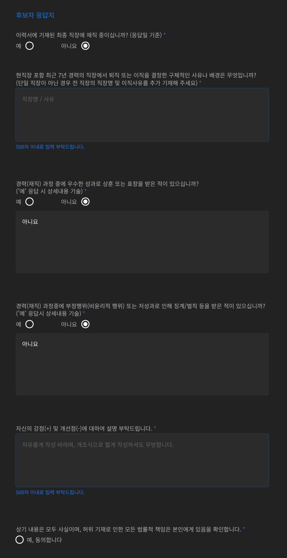 2-1. 동의서 및 퇴사 사유, 성격의 장단점 등을 작성합니다. (후보자가 작성)