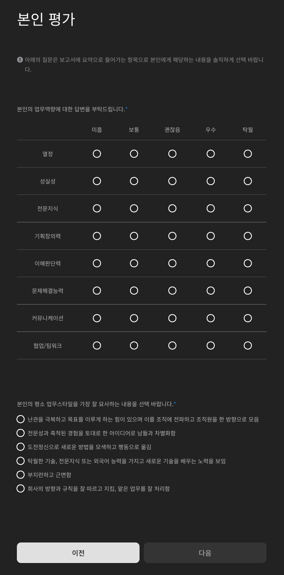 2-2. 간략한 본인 평가를 제출합니다. (후보자가 작성)