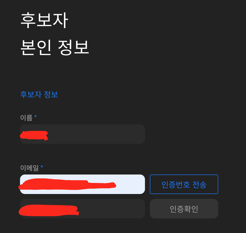 일단 후보자(저)가 작성해야하는 내용을 살펴보도록하겠습니다!